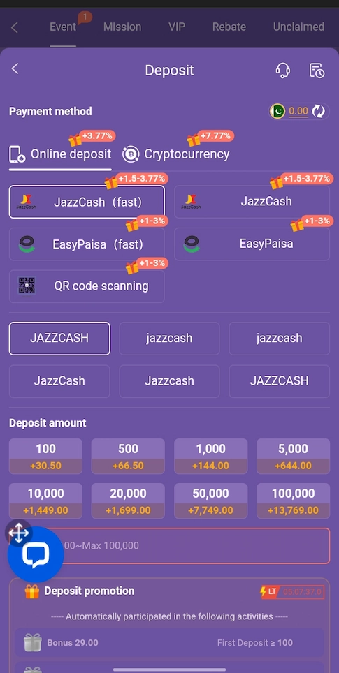 Easypaisa, JazzCash, and bank transfer are supported.